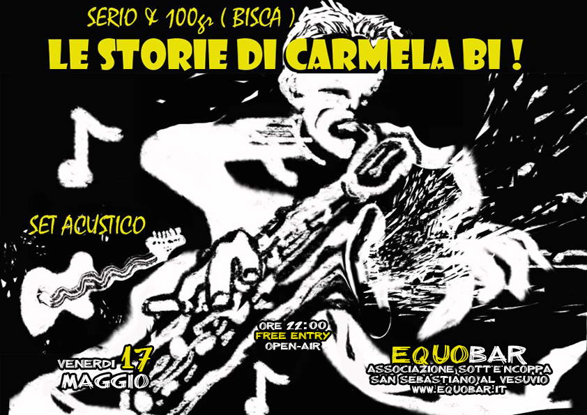 Arrivano in una veste acustica con la stessa energica grinta di sempre e la musicalità caratteristica del loro sound e uno spettacolo che percorre le nuove evoluzioni di chi è sulla scena musicale da circa vent’anni, mescolando sapientemente nuove produzioni e vecchi successi riarrangiati in una veste più intima e attraversando sperimentazioni e nuovi linguaggi musicali. Sergio “Serio” Maglietta & Elio “100grammi” Manzo portano in tour ‘Le Storie di CarmelaBi’ uno spettacolo acustico concepito come la forma più semplice di comunicazione possibile: una chitarra acustica, Elio 100gr è tra i più apprezzati chitarristi del panorama rock nazionale, il sax di Serio, “il sassofonista militante” italiano, e la voce di CarmelaBI a cantare ballate, raccontare e leggere storie.