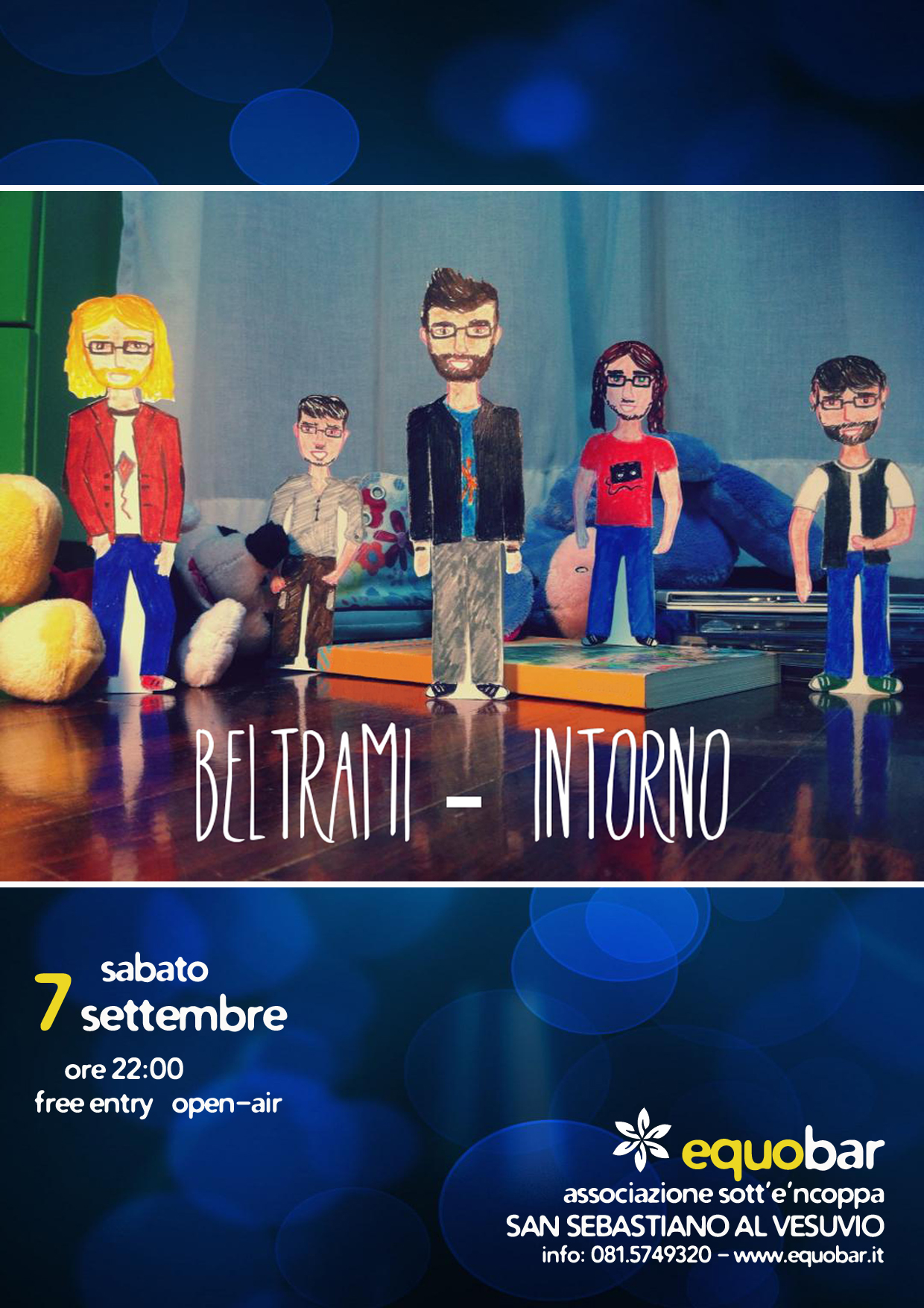 Ora “Intorno” è un disco, il primo disco dei Beltrami, disco con il quale la band cerca di far conoscere la propria musica tramite i canali di diffusione digitali e, soprattutto, quelli “reali” del palco, proponendo al pubblico uno spettacolo che, oltre alle canzoni del disco, presenta qualche cover, alcuni brani appartenenti ai precedenti lavori e alcune storie raccontate sottoforma di reading.